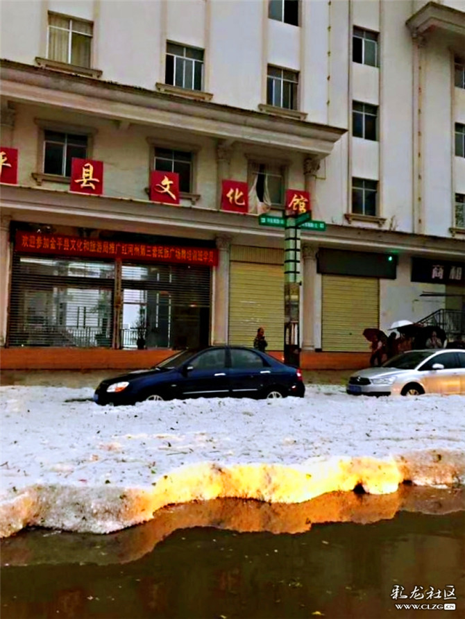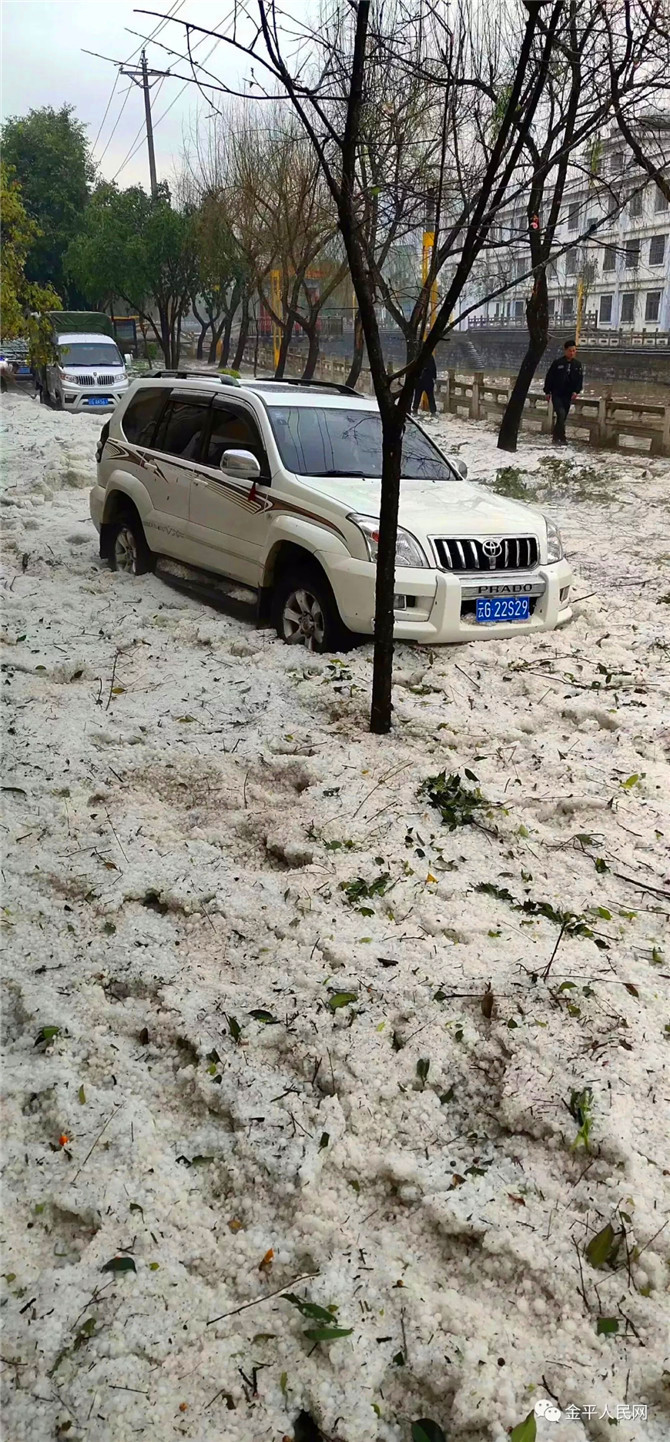 網(wǎng)友@湖邊上班說:暴雨冰雹突然襲擊金平縣地區(qū)。在幾分鐘之內(nèi)金平就進入到冰雪世界,人們一夜醒來見證了大自然的奇觀。