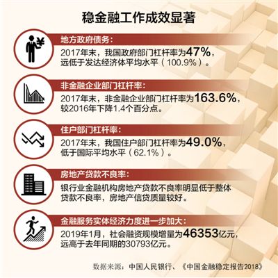穩(wěn)金融政策。去年底召開的中央經(jīng)濟(jì)工作會(huì)議指出,穩(wěn)健的貨幣政策要松緊適度,保持流動(dòng)性合理充裕,改善貨幣政策傳導(dǎo)機(jī)制。這釋放了穩(wěn)金融政策的明確信號(hào)。當(dāng)前,應(yīng)注意以下幾個(gè)方面:一是暢通利率傳導(dǎo)渠道。要把握貨幣政策最終目標(biāo),繼續(xù)推進(jìn)利率市場(chǎng)化改革,強(qiáng)化貨幣政策前瞻性指引作用。二是提高貨幣政策的信貸傳導(dǎo)效率。商業(yè)銀行在貨幣政策信貸傳導(dǎo)中扮演著重要角色,提高貨幣政策的信貸傳導(dǎo)效率就要強(qiáng)化競(jìng)爭(zhēng),提高商業(yè)銀行市場(chǎng)化經(jīng)營(yíng)水平,提高商業(yè)銀行信貸資源配置效率和風(fēng)險(xiǎn)管理能力,減少地方政府部門對(duì)商業(yè)銀行的不當(dāng)干預(yù)。三是注重貨幣政策與財(cái)政政策協(xié)調(diào)配合。在實(shí)施穩(wěn)健的貨幣政策的同時(shí),充分發(fā)揮財(cái)政政策的作用,通過大規(guī)模減稅降費(fèi)降低企業(yè)成本,激發(fā)企業(yè)投資意愿,引導(dǎo)企業(yè)對(duì)我國(guó)經(jīng)濟(jì)平穩(wěn)增長(zhǎng)的預(yù)期。同時(shí),在控制債務(wù)規(guī)??偭康那疤嵯?,較大幅度增加地方政府專項(xiàng)債券規(guī)模,穩(wěn)妥處理地方政府債務(wù)風(fēng)險(xiǎn)。