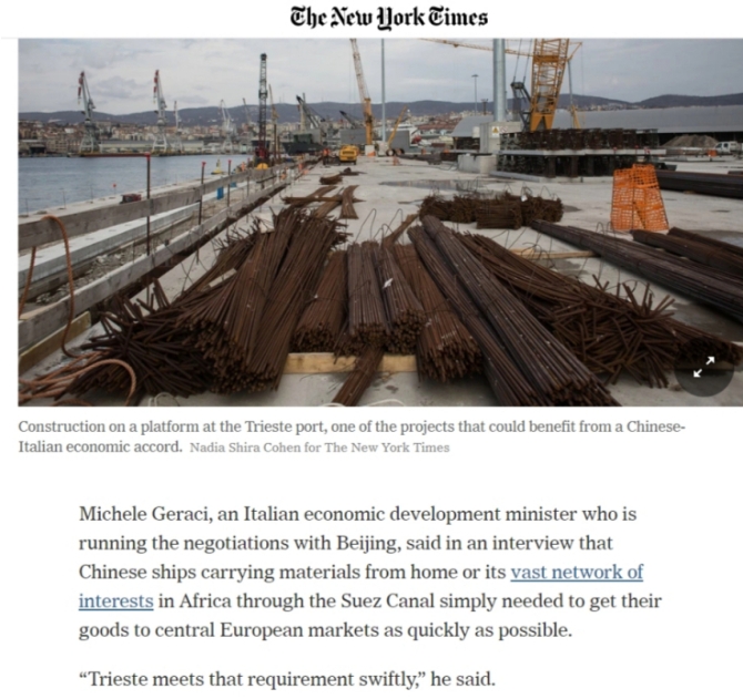 《紐約時報》3月18日報道稱,現(xiàn)在,由于中國的出現(xiàn),的里雅斯特似乎準(zhǔn)備重返世界的中心。