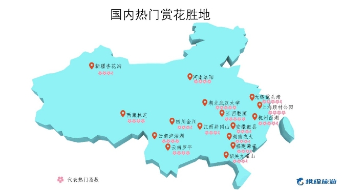 數據顯示,江西婺源、無錫黿頭渚、北京玉淵潭、西藏林芝、云南羅平、河南洛陽、貴州金海、桂林園博園、西安青龍寺、香格里拉普達措,是國內人氣上升最快的熱門賞花游目的地。