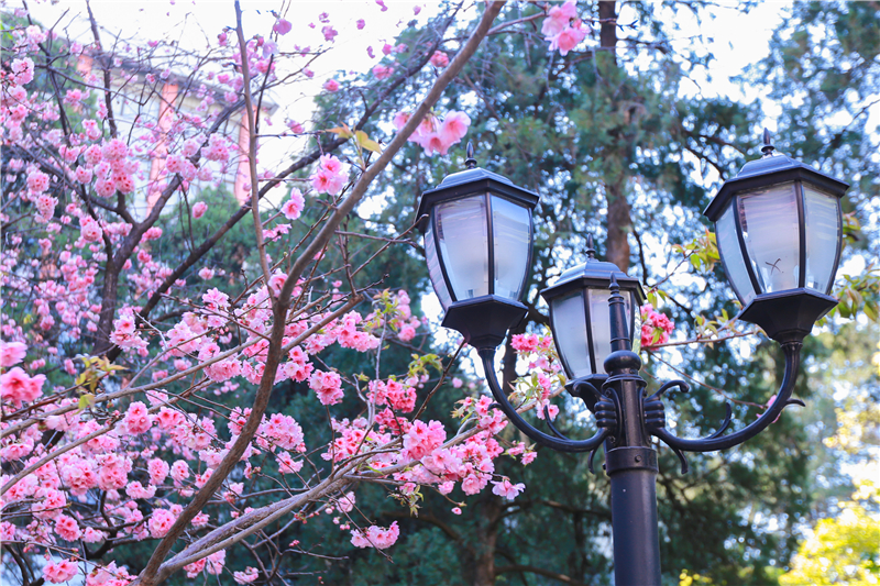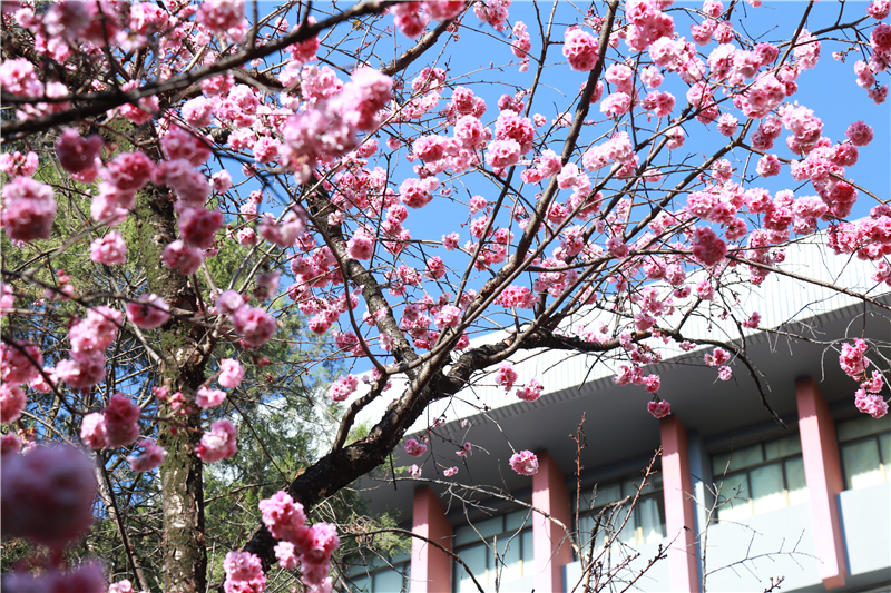 陽春三月,春暖花開,云南民族大學(xué)附屬中學(xué)變?yōu)橐黄ê?。校園中櫻花、海棠、紫藤蘿、滇山茶競相綻放,和風(fēng)旭日下的姹紫嫣紅,為莘莘學(xué)子增添了一份讀書好心情。(新華網(wǎng))