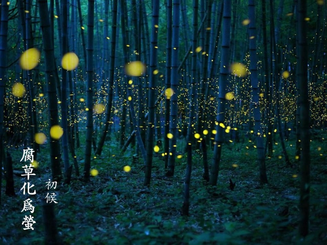 螢火蟲在夏季多就水草產(chǎn)卵,古人便誤以為是由腐草變化而成。大暑時(shí)節(jié),空山飛流螢,天氣濕熱難耐,土壤也濕氣潮潤,時(shí)常有雷雨突然出現(xiàn)。