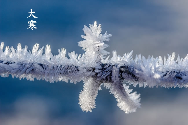 大寒,母雞開始孵育小雞,鷹隼在天空徘徊,狩獵找食,以度寒冬。此時(shí)寒冷已極,河川的水結(jié)冰形成又厚又硬的冰層。