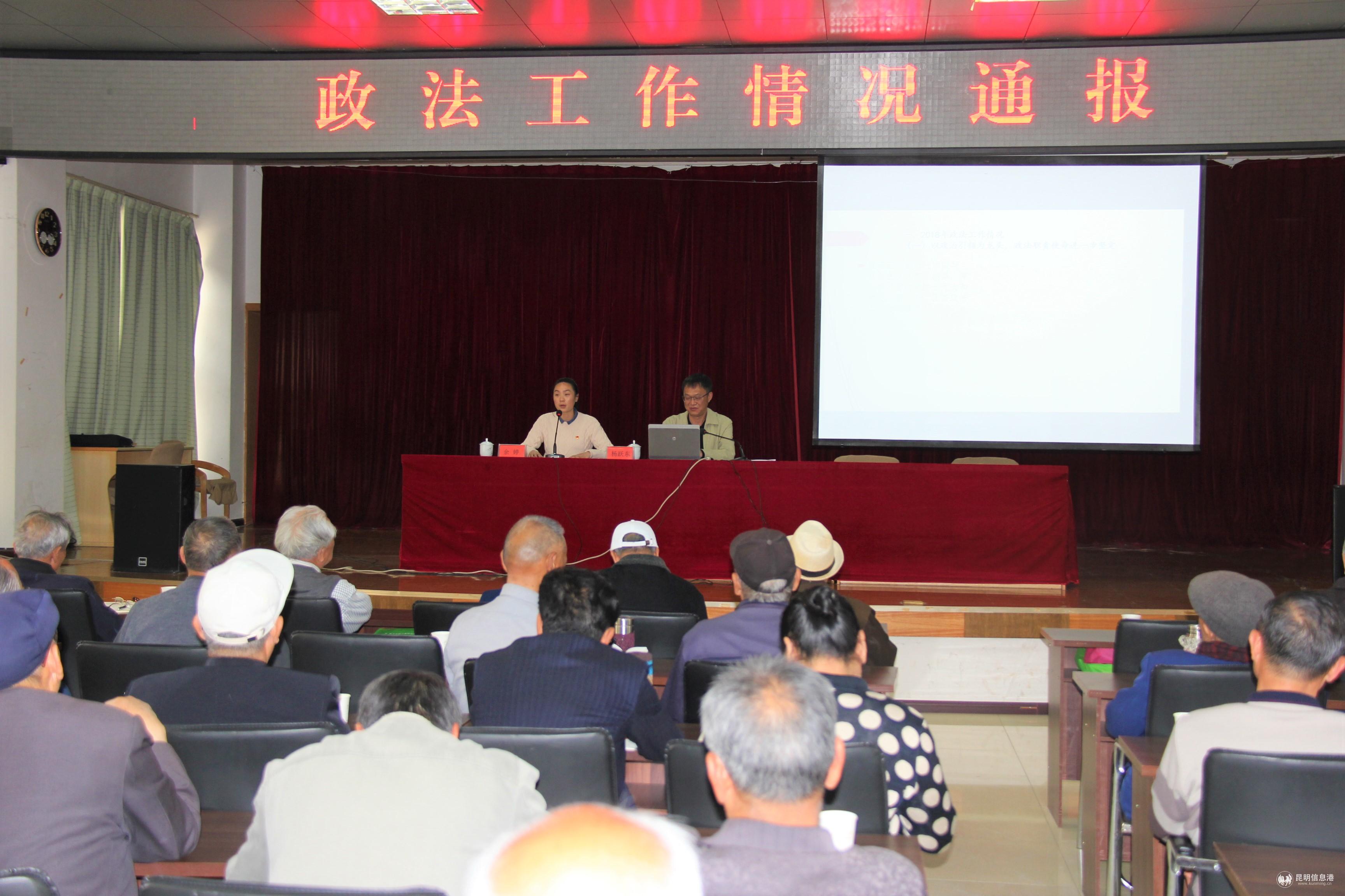 昆明信息港訊 通訊員黃麗綱 “在鄉(xiāng)村、城郊、社區(qū)等區(qū)域拉幫結(jié)派、尋釁滋事、收取保護費,操縱、經(jīng)營黃賭毒等違法犯罪活動,此類危害社會治安的黑惡勢力,一直都是公安機關(guān)嚴厲打擊的重點。近日,昆明警方成功打掉了一個盤踞城中村進行涉黑涉惡犯罪的團伙,19名團伙成員被警方抓捕歸案……”大屏幕上正在播放央視網(wǎng)的新聞視頻,臺下老干部們認真地觀看和學(xué)習(xí)。這是發(fā)生在晉寧區(qū)委老干部局組織召開的政法工作通報會上的一幕,根據(jù)《中共昆明市晉寧區(qū)委辦公室關(guān)于定期向離退休干部通報工作的通知》安排,3月20日下午,晉寧區(qū)委常委、區(qū)委政法委書記楊躍東向全區(qū)170余名離退休老干部通報政法工作開展情況。