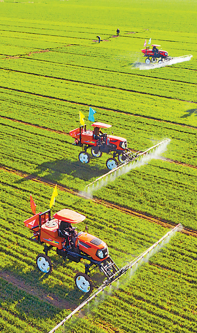 春分已來,春鋤撲撲,萬頃田疇從南到北正在鋪展綠色生產(chǎn)方式。在湖北省襄陽市何崗村的小麥萬畝示范方田頭,市農(nóng)科院國家小麥體系實(shí)驗(yàn)站站長凌冬正忙著指導(dǎo)農(nóng)業(yè)工人用無人機(jī)播撒肥藥一體化噴霧劑。忙碌的他面帶笑意:“水肥藥一體化噴灑,不僅能提高春耕生產(chǎn)效率,還能大大降低單位面積化肥農(nóng)藥投入品的使用!”