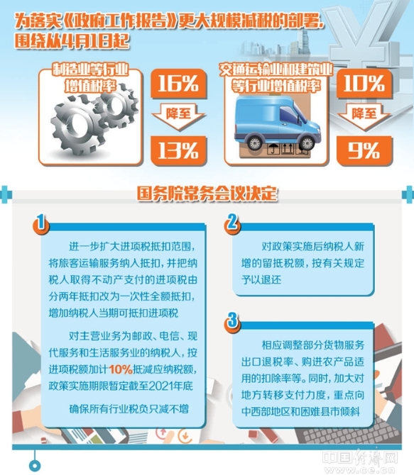 日前,國務(wù)院常務(wù)會議明確增值稅減稅配套措施,部署落實《政府工作報告》更大規(guī)模減稅。