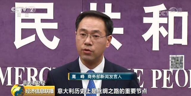 商務(wù)部新聞發(fā)言人 高峰:意大利歷史上是絲綢之路的重要節(jié)點(diǎn),我們歡迎意大利積極參與共建“一帶一路”。中意兩國(guó)在拓展貿(mào)易和投資、基礎(chǔ)設(shè)施建設(shè)、金融、衛(wèi)生、旅游等領(lǐng)域都有較大的合作空間。
