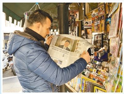 羅馬街頭,一位當?shù)厥忻耖喿x習近平主席在《晚郵報》發(fā)表的署名文章。本報記者 姜 波攝