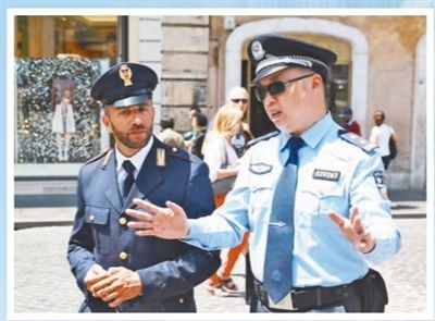 中意警察在羅馬街頭聯(lián)合巡邏。本報記者 韓秉宸攝