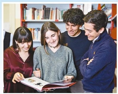 羅馬國立住讀學校學生正在圖書館翻閱中文書籍。本報記者 韓秉宸攝