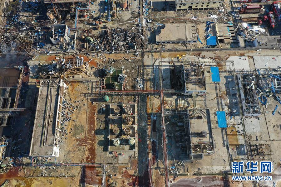 3月22日無(wú)人機(jī)拍攝的江蘇鹽城響水化工廠爆炸事故現(xiàn)場(chǎng)。 新華社記者 季春鵬 攝