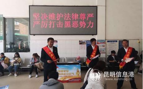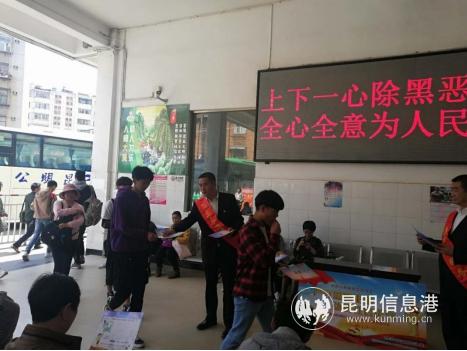 昆明信息港訊 記者周智宇 通訊員王文英 3月22日,昆明公交城市、城鄉(xiāng)巴士公司聯(lián)合組織黨員志愿者在遠(yuǎn)郊班車(chē)站開(kāi)展“掃黑除惡”專(zhuān)項(xiàng)斗爭(zhēng)集中宣傳活動(dòng)。
