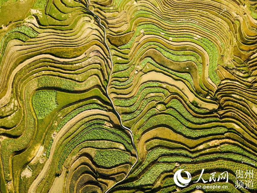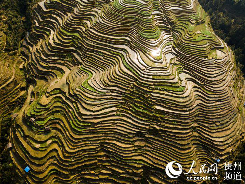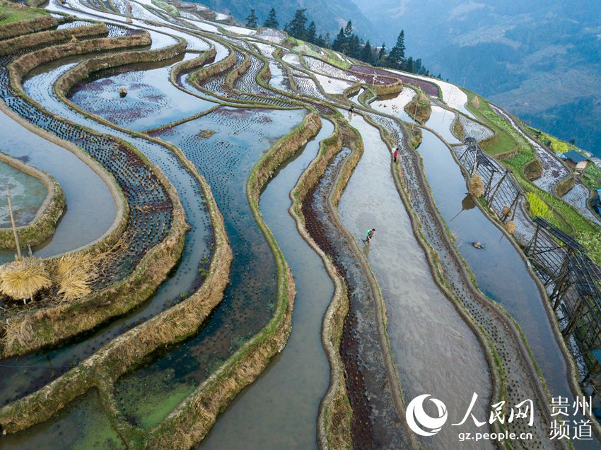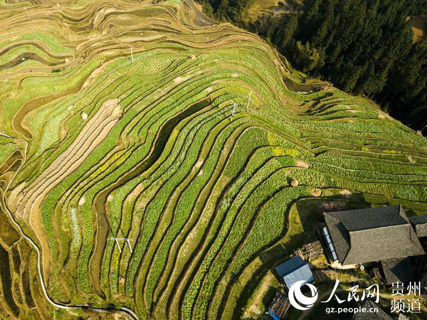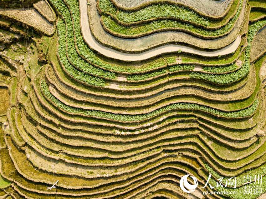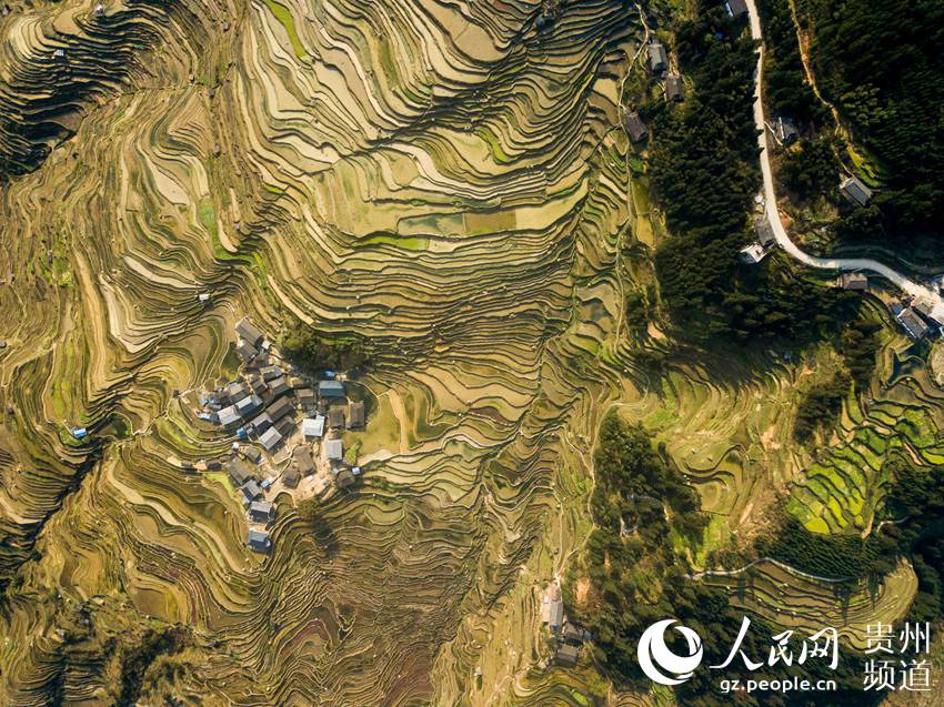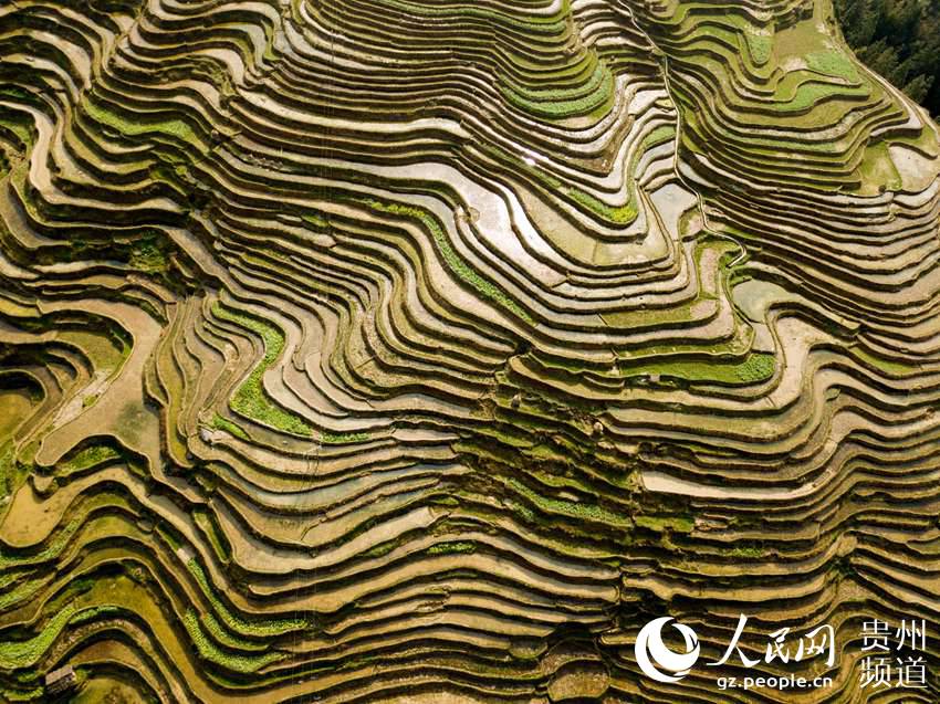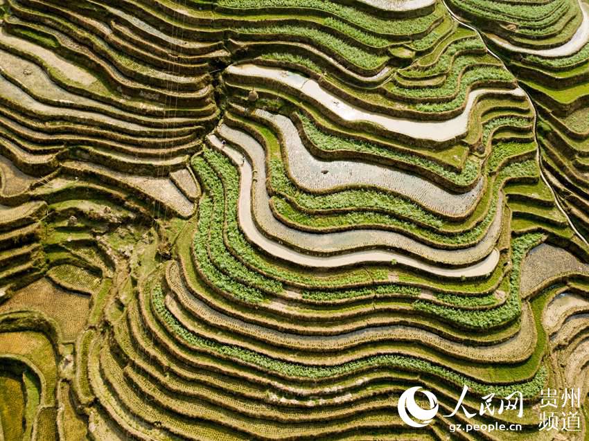 3月22日,地處貴州省黔東南苗族侗族自治州從江縣西部月亮山腹地的加榜梯田春意盎然,層層疊疊的梯田與青山、苗家吊腳樓及勞作的村民構(gòu)成了一幅美麗的鄉(xiāng)村春日景象。(吳德軍)