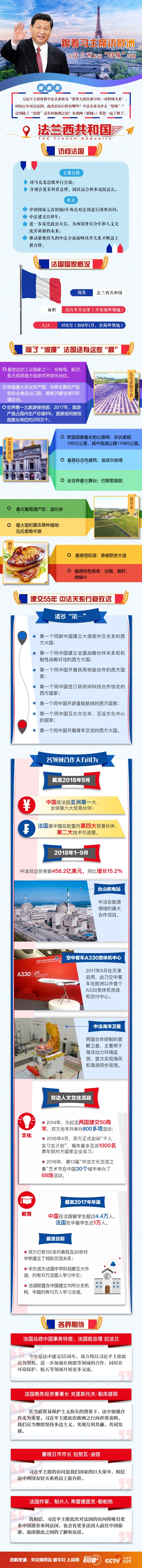 中法建交以來(lái),兩國(guó)堅(jiān)持相互尊重、求同存異、互利共贏,不斷擴(kuò)大雙方交往合作,給兩國(guó)和兩國(guó)人民帶來(lái)了實(shí)實(shí)在在的福祉。習(xí)近平主席此次訪法是中國(guó)國(guó)家元首時(shí)隔5年再次對(duì)法國(guó)進(jìn)行國(guó)事訪問(wèn)。此訪正值中法建交55周年,對(duì)兩國(guó)關(guān)系具有特殊重要意義。