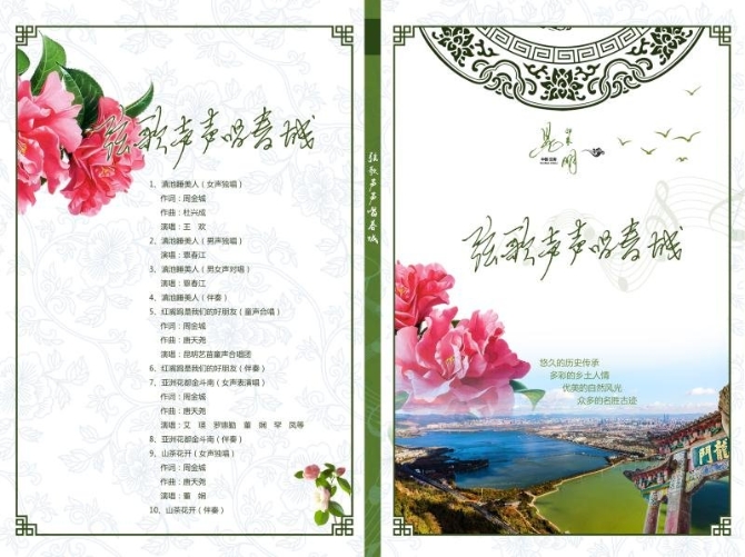《弦歌聲聲唱春城》共收錄歌曲四首,包括:《滇池睡美人》、《紅嘴鷗是我們的好朋友》、《亞洲花都金斗南》和《山茶花開》,歌詠的都是春城的著名景點、明星產(chǎn)業(yè)和現(xiàn)象、名片級別的事物,都值得大歌特歌。