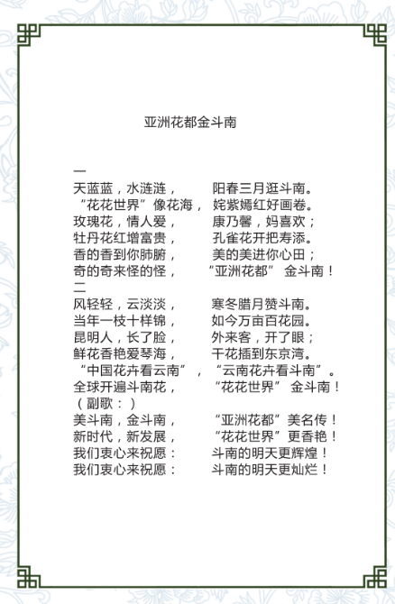 為什么要創(chuàng)作和錄制這張光碟?歌詞作者周金城在光碟的《前言》中回答清楚了。他寫道:在改革開放進入了新的時代之后,全國各大中城市都在以豐富多彩的文藝形式,大張旗鼓地宣傳自己、推廣自己,以期在激烈的市場競爭中占得先機。我們昆明,以悠久的歷史傳承、多彩的鄉(xiāng)土人情、優(yōu)美的自然風光、眾多的名勝景觀而聞名于世,是世界第二、亞洲第一的宜人宜居的春城,這些優(yōu)勢,得天獨厚,理應大張旗鼓,廣泛宣傳。而以文藝形式宣傳它,就是相關人士的責任了。1978年8月,我從云南邊防部隊新聞報道組長的崗位上,調(diào)新華社昆明軍區(qū)分社任記者,從此定居春城,至今已達40年之久,算得是一位“老昆明”了。我發(fā)揮我當年在部隊當過毛澤東文藝宣傳隊隊長、為宣傳隊創(chuàng)作過節(jié)目(包括歌曲)的特長,冥思苦想,反復推敲,寫出了十多首歌唱春城的歌詞,從中選出最具代表昆明特色的四首,請杜興成(八一電影制片廠原音樂組長、著名作曲家)和唐天堯(中音協(xié)會員、云南人民廣播電臺原音樂編輯)精心譜曲,聘請高水平的樂隊和歌唱家,演唱制作,最后編輯成組歌《弦歌聲聲唱春城》。希望碟中的動人旋律、美妙歌喉和真情演唱,能為宣傳昆明起到積極的作用。果如此,我的心愿就算達到了。
