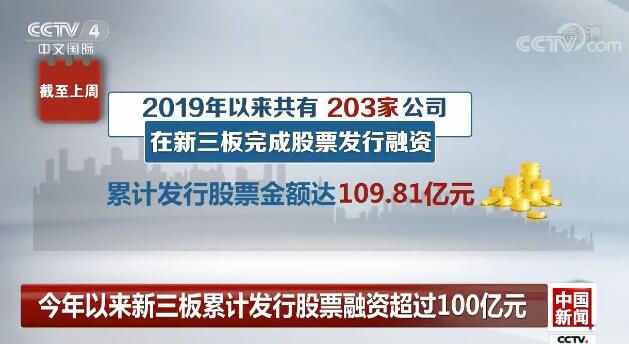 全國中小企業(yè)股份轉(zhuǎn)讓系統(tǒng)(新三板)披露數(shù)據(jù)顯示,截至上周,今年以來,共有203家公司在新三板完成股票發(fā)行融資,累計發(fā)行股票金額達(dá)109.81億元。截至3月22日,新三板掛牌公司總計10368家,總市值33319.50億元。