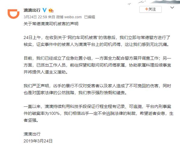 關(guān)于常德滴滴司機(jī)被害的聲明