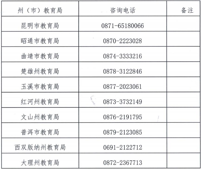 (六)云南省各州(市)認(rèn)定機(jī)構(gòu)咨詢電話