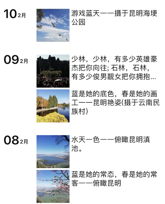 一路美景,一路感動,回到酒店后,李義明馬上拿起筆記錄下了這句話:昆明——藍(lán)是她的常態(tài),春是她的常客。“回到家,我不斷想起昆明的美,就把這句廣告詞發(fā)給了昆明有關(guān)部門,希望讓更多人看到昆明的美好?!崩盍x明說,一方面,想通過這樣的方式表達(dá)自己對昆明的欣賞和祝福,另一方面,自己退休前是做宣傳工作的,希望通過這句話,讓大家都能看到春城的美,然后愛上這個(gè)地方。