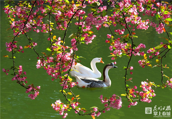 抬頭仰望是清新的藍(lán),環(huán)顧四周是怡人的綠。即使到了寒冬時(shí)節(jié),在昆明,處處依舊是綠意盎然、繁花似錦的景象,粉嫩的冬櫻花、絢麗的三色堇、繽紛的虞美人等爭相怒放,讓市民和游客倍感溫暖。