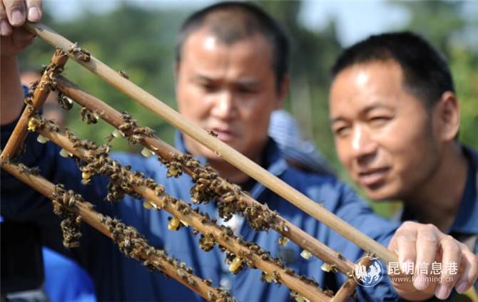 西山區(qū)創(chuàng)業(yè)指導(dǎo)團(tuán)農(nóng)業(yè)專家對(duì)貓貓?bào)漯B(yǎng)蜂農(nóng)戶進(jìn)行指導(dǎo)。昆明日?qǐng)?bào)記者趙偉攝