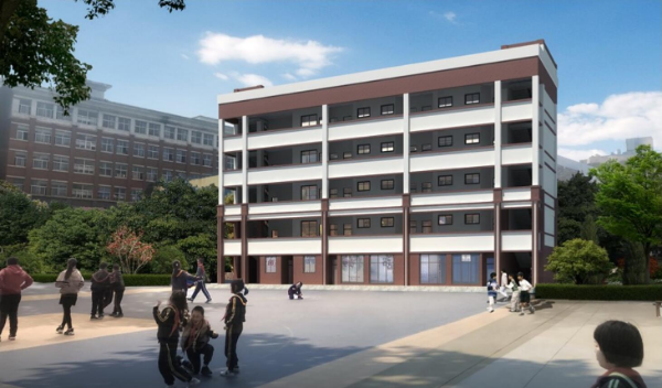 拆除現(xiàn)學(xué)校內(nèi)西南側(cè)1400平方米教學(xué)樓,原址重建。