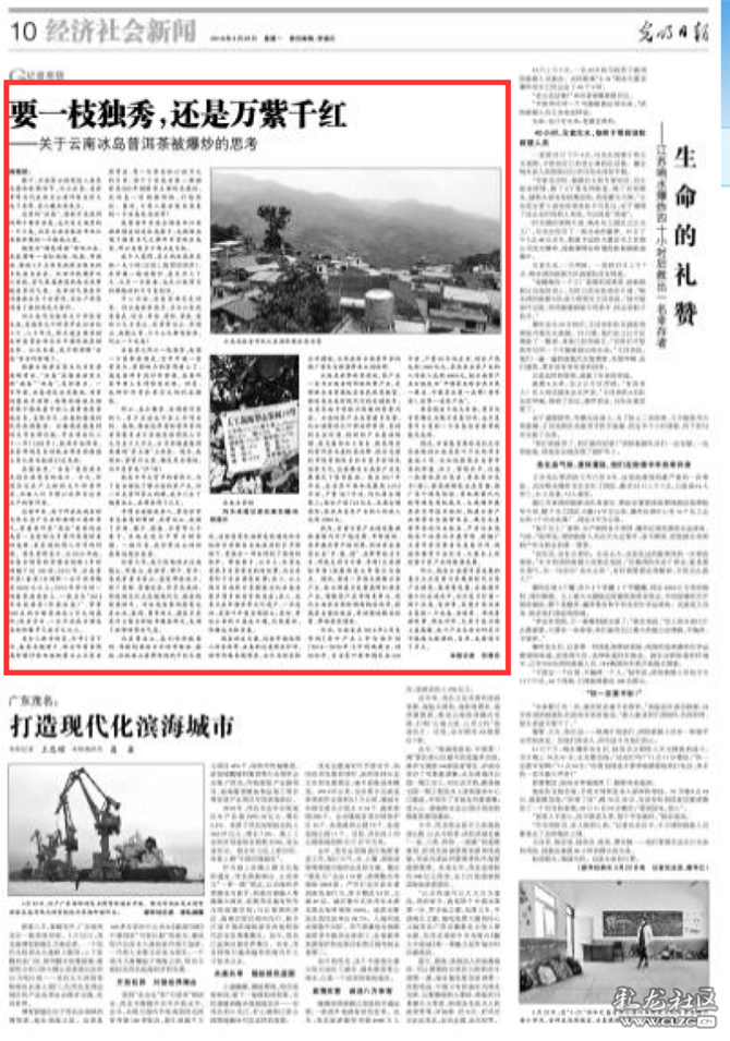 說到營銷,筆者倒是覺得云南茶界應該反思:為什么自家的寶貝成了別人的搖錢樹?云南有關地區(qū)和部門應該反思:為什么普洱茶產(chǎn)區(qū)大多是深度貧困地區(qū)?云南媒體應該反思:為什么別人的東西賣天價是“致富經(jīng)”,而云南的茶葉市場剛有點熱度媒體就開始喊“降溫”?我們是不是應該認真學習借鑒其他茶區(qū)的先進營銷理念,以適度的營銷甚至是“炒作”,促進普洱茶產(chǎn)業(yè)化、市場化,讓更多的人知曉普洱茶,共同分享大自然的這份恩賜。同時也讓廣大茶農(nóng)能夠得到更多實惠,真正借助普洱茶這張名片這款名品走上致富之路、小康之路。