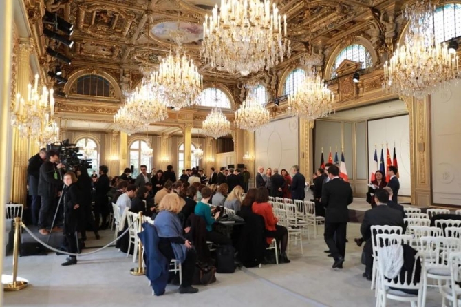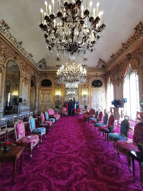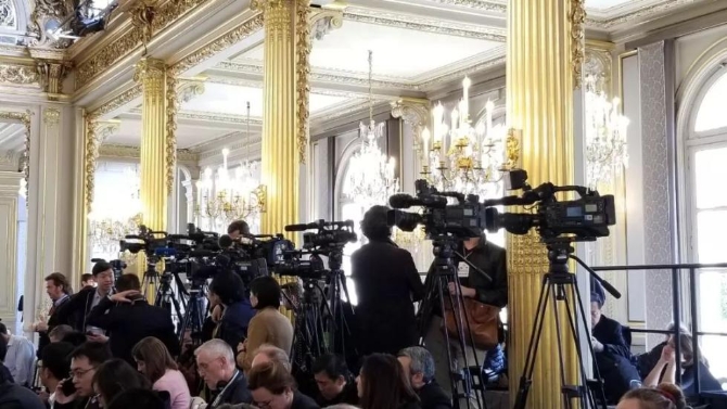 閉幕式在愛麗舍宮一層節(jié)日大廳舉行,這是開始前的場(chǎng)景。(央視記者拍攝)