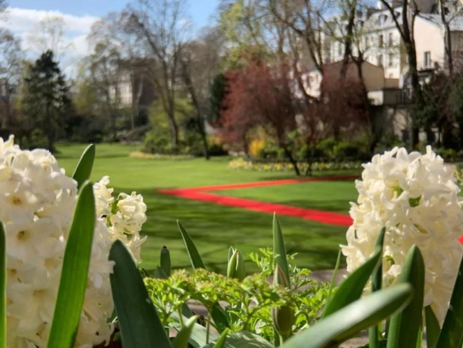 這是總理府花園,菲利普就是在這里迎接習(xí)近平。總理府擁有巴黎市面積最大的私人花園,占地3公頃。(央視記者張淳拍攝)