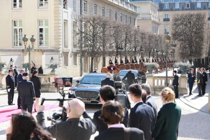 在習(xí)主席結(jié)束當(dāng)天密集的國事訪問活動(dòng)后,法國總統(tǒng)馬克龍?jiān)趷埯惿釋m為他舉行了歡送儀式。