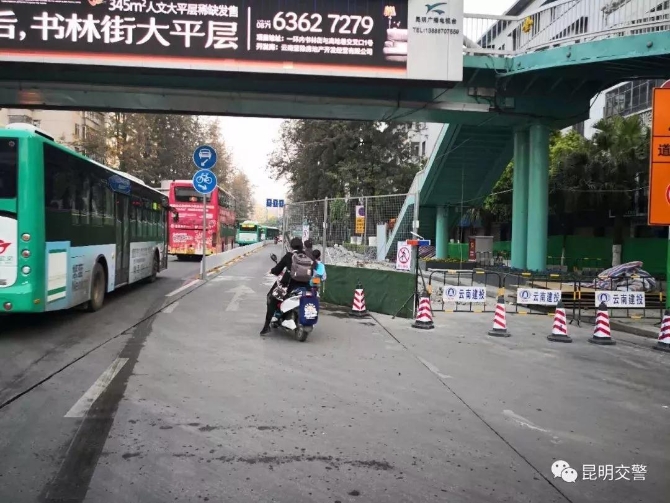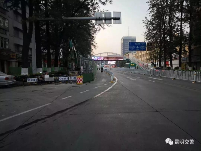昆明交警提示:期間,行人過街可以從翠湖南路口人行天橋或從昆師路與建設路交叉口通行。請由翠湖南路右轉進入東風西路、由白云巷右轉進入東風西路的機動車輛及非機動車駕駛人注意避讓。請行經上述圍擋施工路段的出行市民、機動車輛及非機動車駕駛人注意觀察交通標志,安全出行。
