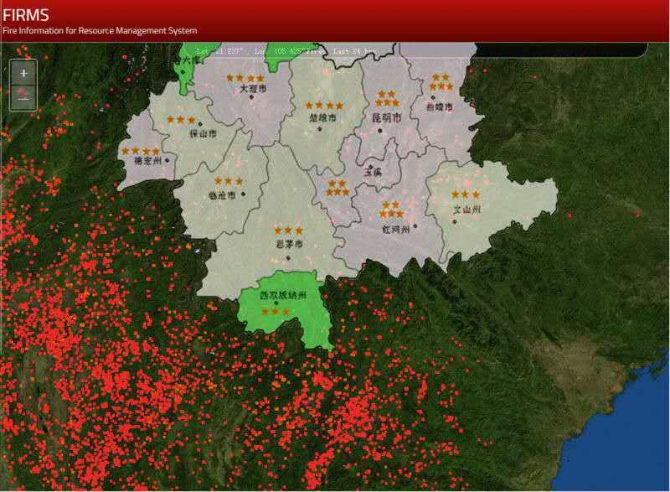 衛(wèi)星監(jiān)測顯示的火點(diǎn)
