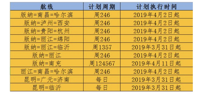 昆明信息港訊 記者上官艷君 3月27日,記者從四川航空云南分公司獲悉,川航云南將從3月31日?qǐng)?zhí)行2019年夏航季航班計(jì)劃時(shí)新增10條航線,即日起即可購(gòu)票。