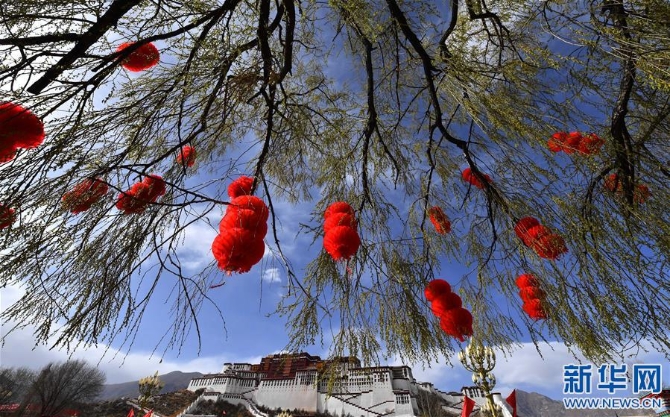 3月27日,拉薩布達(dá)拉宮一派節(jié)日氣氛。新華社記者 覺(jué)果 攝