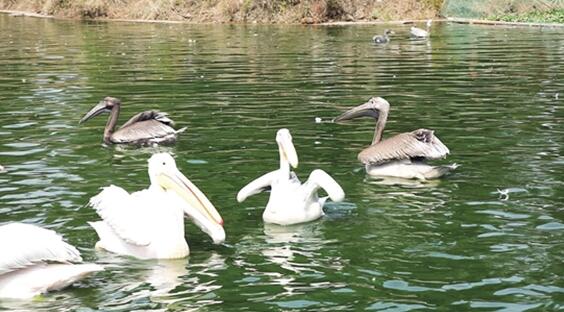 3月28日,記者來到云南野生動(dòng)物園天鵝湖,看到兩只灰色的小鵜鶘在湖中游動(dòng)。云南野生動(dòng)物園的飼養(yǎng)員介紹,目前,天鵝湖區(qū)域生活著13只成年白鵜鶘,都是2007年引進(jìn)的。近期,白鵜鶘們首次在園區(qū)內(nèi)孵化出兩只小鵜鶘。據(jù)介紹,鵜鶘對環(huán)境的要求很高,在新環(huán)境中它們感到“這里很安全”“很舒適”,適合它們生存了,才會(huì)開始交配、繁殖后代。