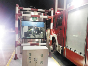 出警消防車被擋在收費(fèi)站。消防隊(duì)供圖