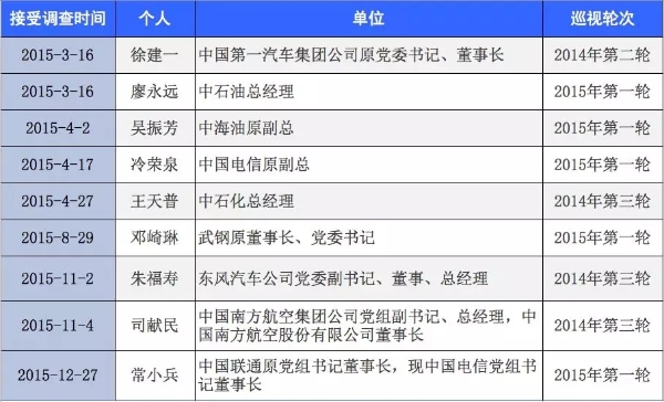 巡視,也對(duì)鞏固發(fā)展反腐敗斗爭(zhēng)壓倒性勝利發(fā)揮著利劍作用。早在2015年接受調(diào)查的9位央企高管,有6位所在企業(yè)于2015年接受巡視,如中海油原副總吳振芳、中石化總經(jīng)理王天普、中國(guó)電信董事長(zhǎng)常小兵等,另外3位所在企業(yè)也于此前被巡視。巡視對(duì)國(guó)企“老虎”的震懾力,可見一斑。巡視組到企業(yè),盯住重點(diǎn)人、重點(diǎn)事、重點(diǎn)問題,保持懲治腐敗高壓態(tài)勢(shì),讓國(guó)企管理人員不敢腐;通過巡視查找企業(yè)體制機(jī)制弊端,促進(jìn)深化改革,完善制度,規(guī)范權(quán)力運(yùn)行,也扎牢了不能腐的籠子。