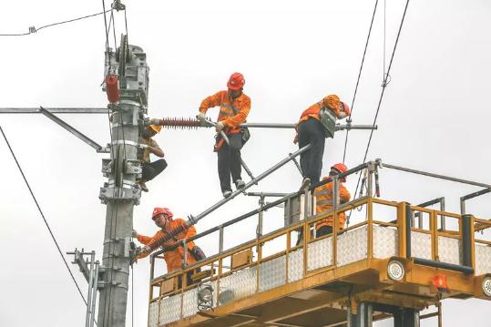 ?在密布的接觸網(wǎng)旁
