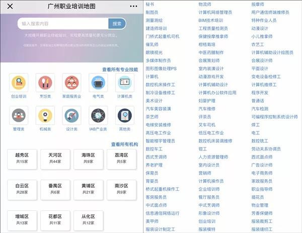 今年1月底,“廣州職業(yè)培訓(xùn)地圖(線上版)”就正式上線運行,這個小程序能夠幫助廣州全市職業(yè)培訓(xùn)學(xué)員僅僅通過微信,就可以簡單便捷地選擇職業(yè)培訓(xùn)機構(gòu)以及課程內(nèi)容。