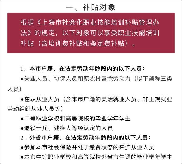 各地具體辦法實施也會在此基礎(chǔ)上進行更詳細的要求劃分。以上海為例,補貼對象的大類主要以“是否為該市戶籍”劃分,并且將具備該市戶籍的退役士兵和殘疾人等經(jīng)認定者也列入可享受補貼名單。