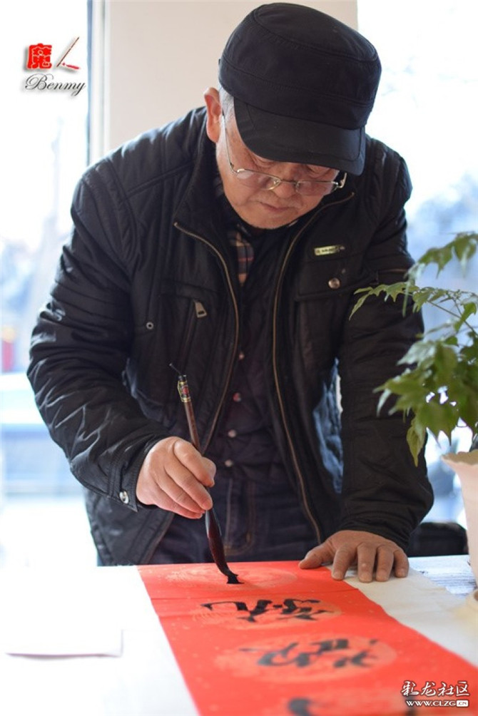 簫寒生前寫春聯(lián)的場景。彩龍社區(qū)網(wǎng)友benmy/攝