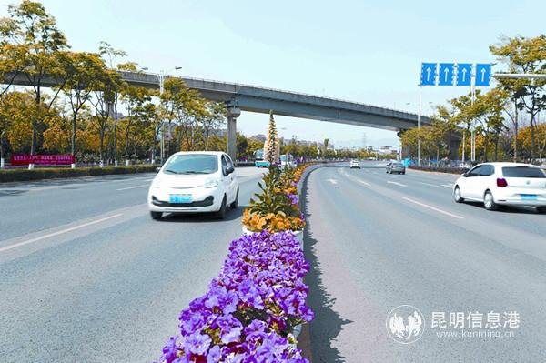昆明信息港訊(昆明日報 記者李海曦) 近日,廣福路越來越美了:原本林下粗放的綠化帶沒有了,取而代之的是繽紛的林下花帶;在中央隔離帶上,已完成新花箱安裝2608米?;ㄏ湔R地連成一線,形成一條大氣美觀的彩色花帶。