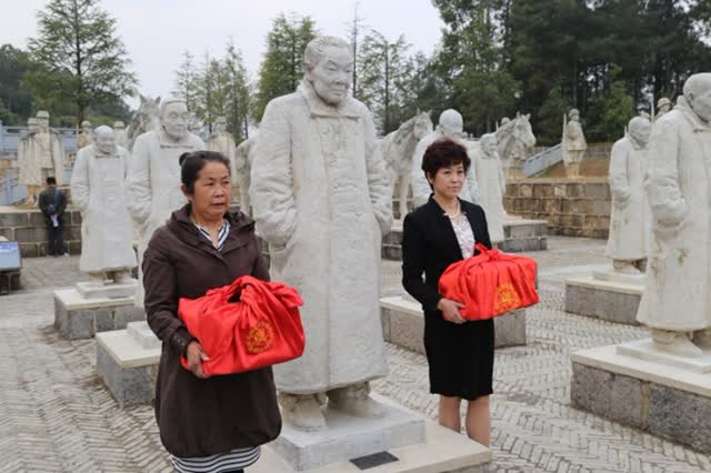 “父親臨終前對我們說,他此生最大的愿望就是在死后和母親一起回歸到他生前曾為之奮戰(zhàn)的滇西抗日戰(zhàn)場上,而龍陵松山的雕塑群就是最好的選擇?!?徐義說,根據(jù)父親的遺愿,在父親去世一年紀念日到來之際,他們幾子妹主動與龍陵相關部門取得聯(lián)系,并得到了支持和同意?!拔覀兪?月31日晚帶著父親和母親的骨灰盒感到龍陵的,今天上午,在龍陵有關人員的陪同和幫助下,我們將父母的骨灰盒安葬在了父親的雕像下,完成了兩位老人攜手相伴永遠的心愿?!?/p>