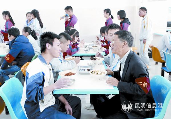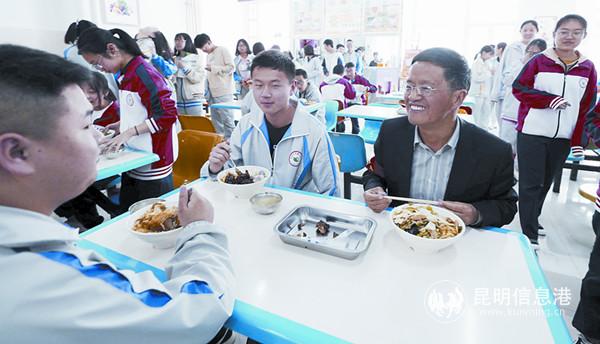 圖為在官渡區(qū)第二中學(xué)食堂,校領(lǐng)導(dǎo)和學(xué)生一起用餐。記者李海曦/攝