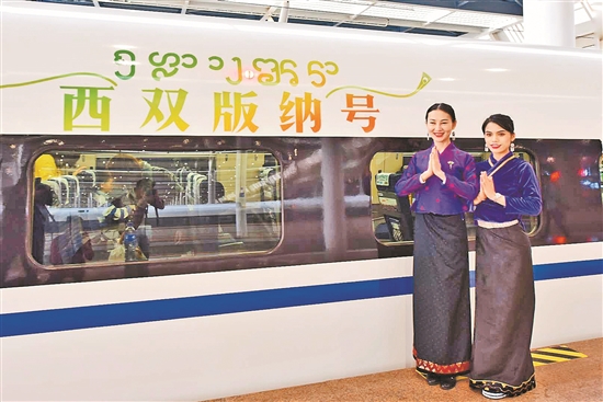 4月1日7時(shí)53分,G2924/1次高鐵列車帶著濃郁的西雙版納民族文化風(fēng)情,從昆明南站始發(fā),途經(jīng)4個(gè)省市,駛向廣東深圳北站。自此,“西雙版納號(hào)”深昆文化旅游列車正式開行。