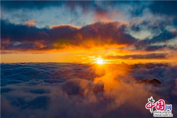 雪后云海升騰,更是有如入仙境之感。云在風(fēng)的推動下,像海上翻卷的浪花,悄無聲息卻又豪邁壯觀。奔騰的云海,時而平緩,時而洶涌,加上四周連綿不斷的山峰錯落有續(xù),恍惚有種天地之間任我暢游的大氣之感。
