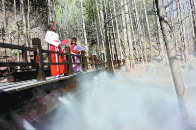植物園櫻桃溝內(nèi),植物園桃花節(jié)重點(diǎn)推薦“網(wǎng)紅”景區(qū)——“人間仙境”,整個(gè)噴霧景區(qū)全長(zhǎng)約200米。桃花節(jié)期間從清明節(jié)開(kāi)始,每天上午9時(shí)至10時(shí)開(kāi)放噴霧,游客漫步在棧道之上,穿行于水杉林間,身邊不時(shí)飄起陣陣水霧,仿佛步入人間仙境。