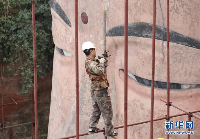 4月1日,歷時近半年的四川樂山大佛殘損區(qū)域搶救性保護前期研究及勘測工作結(jié)束,樂山大佛正式“出關(guān)”,景區(qū)的九曲棧道和佛腳觀光平臺重新開放。 新華社記者 江宏景/攝