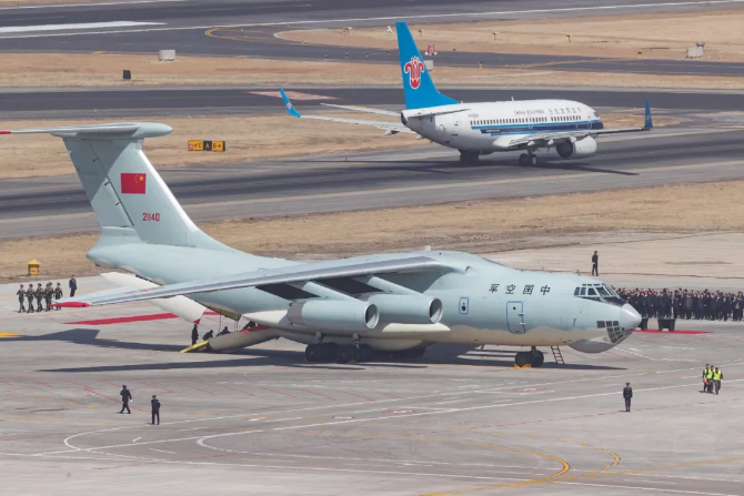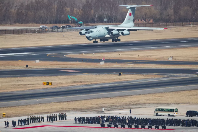 運載烈士遺骸棺槨的伊爾-76運輸機